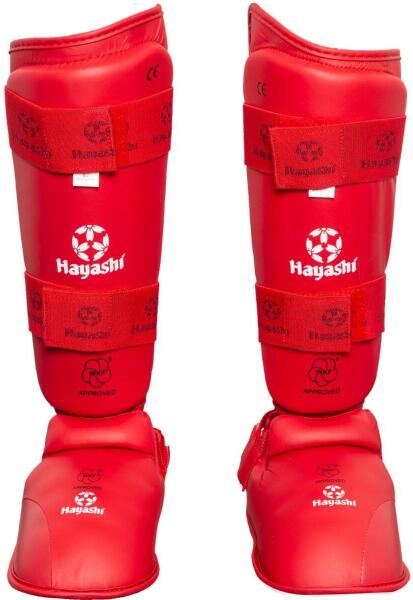 HAYASHI Lábfejes lábszárvédő, WKF, Hayashi, karate, piros L vörös